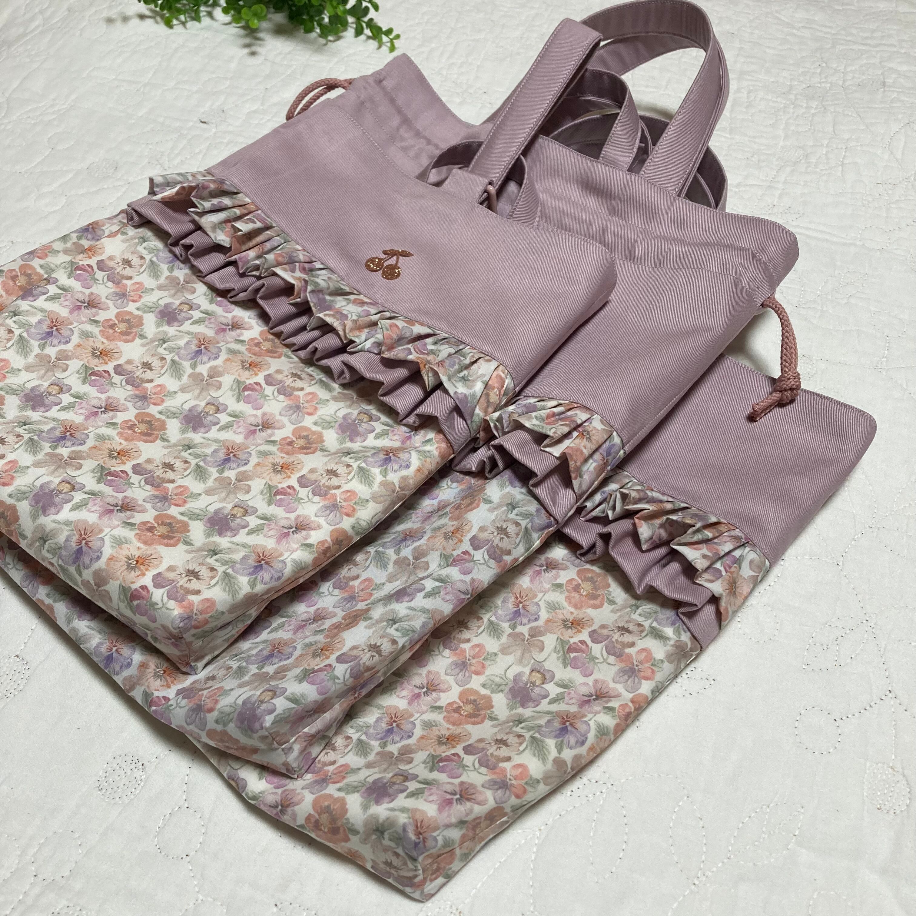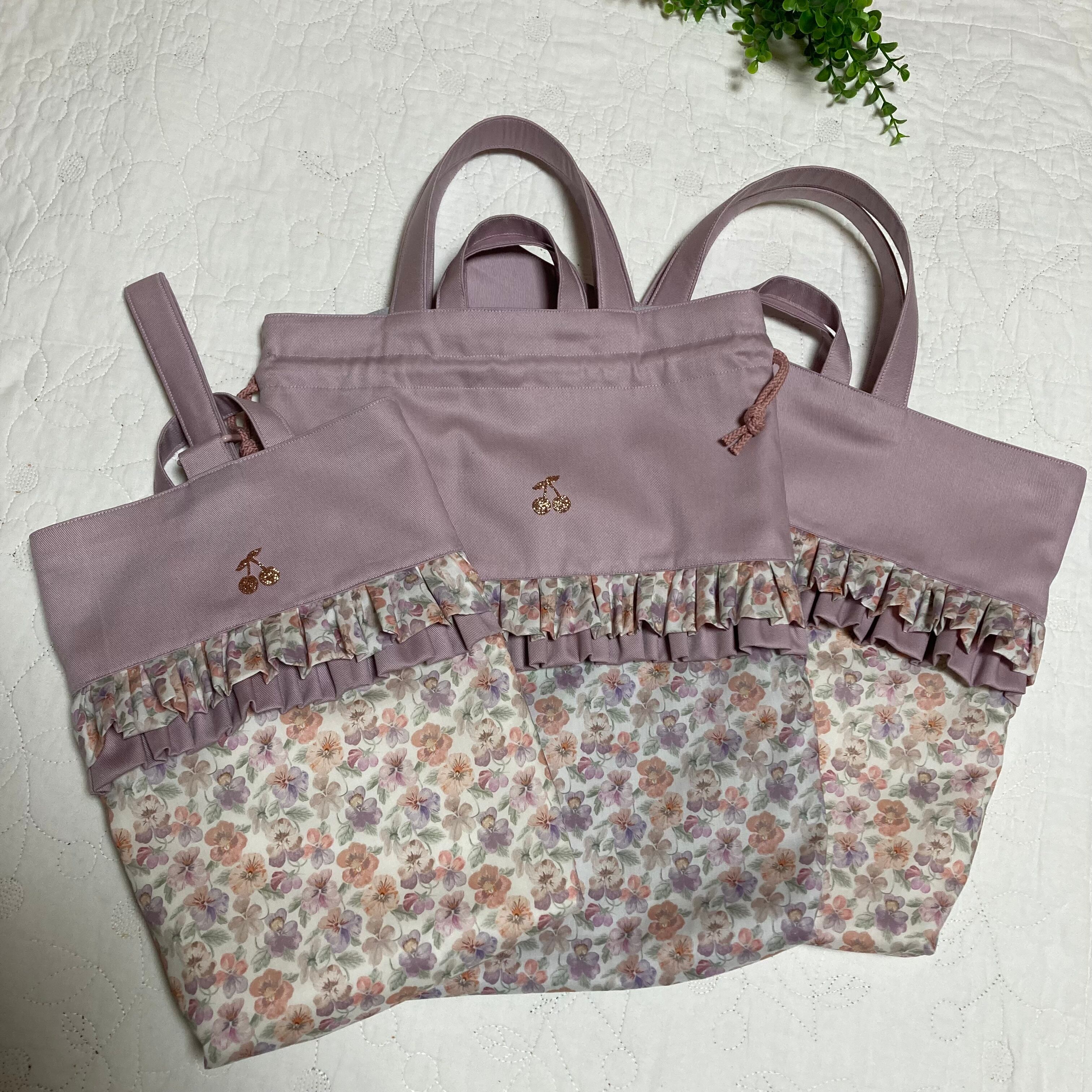 絵本袋 着替え袋 靴袋 3点 ループ付き シンクオブミー ウォームシトラス ハンドメイド 入学入園準備グッズ