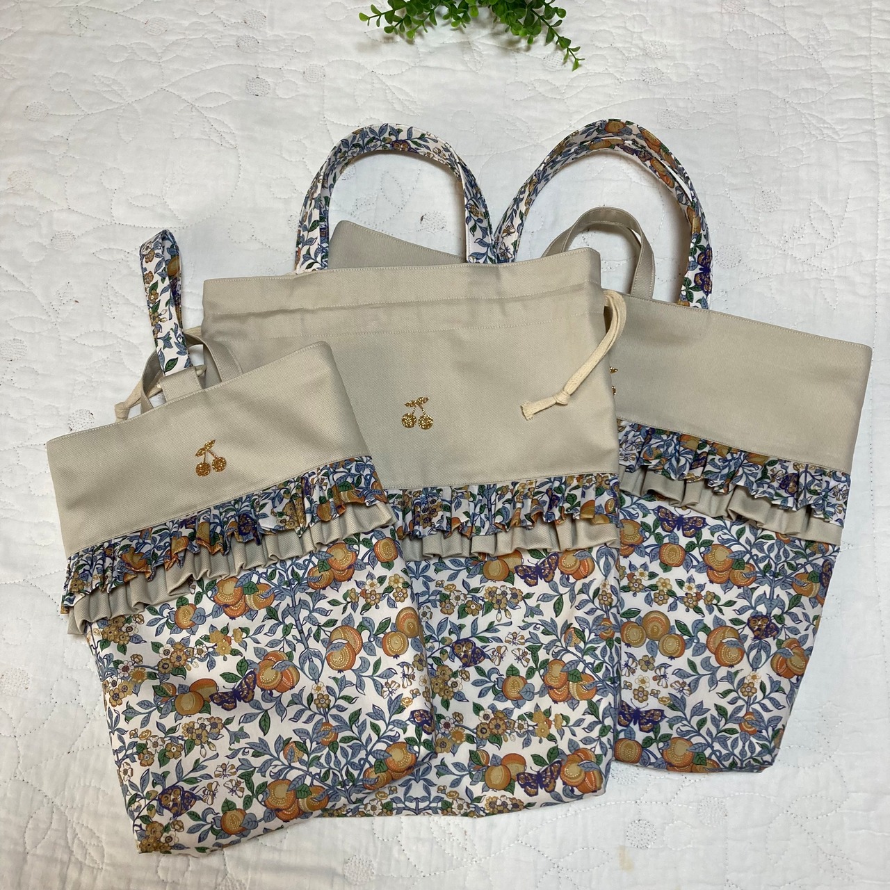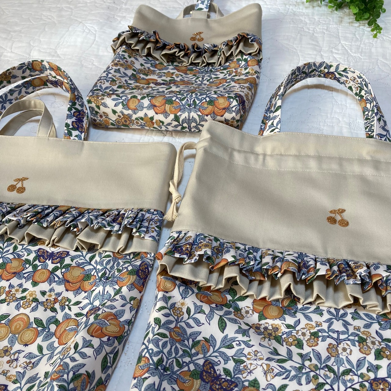 絵本袋 体操服袋 上靴袋 3点セット ループ付き ハンドメイド リバティ オーチャード 入園 入学準備グッズ