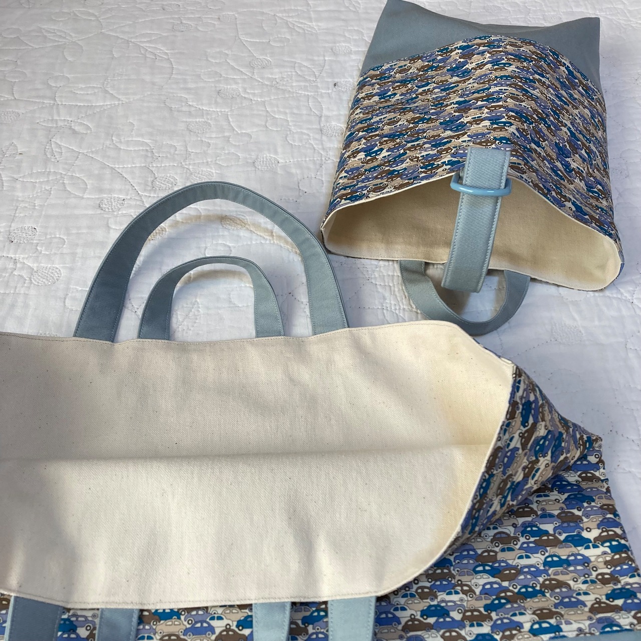 手提げかばん 上履き入れ 2点セット ループ付き リバティ カーズ ハンドメイド