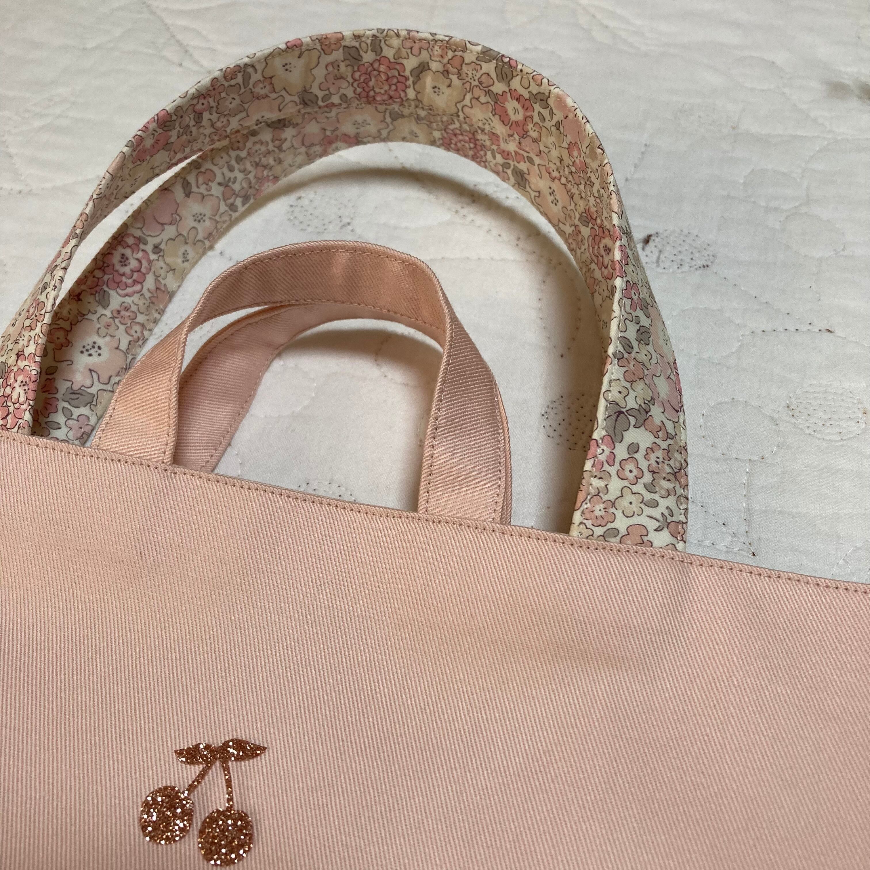 手提げかばん レッスンバッグ 絵本袋 ハンドメイド ミシェル ニュアンスピンク 入園入学準備グッズ
