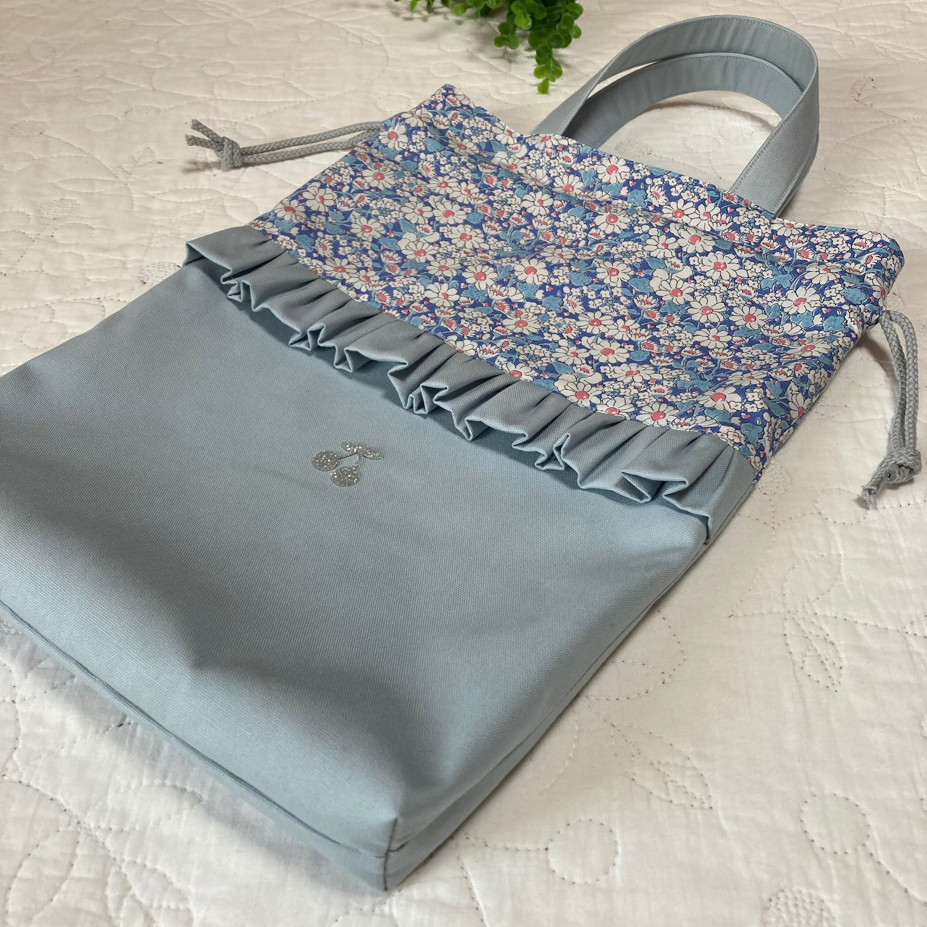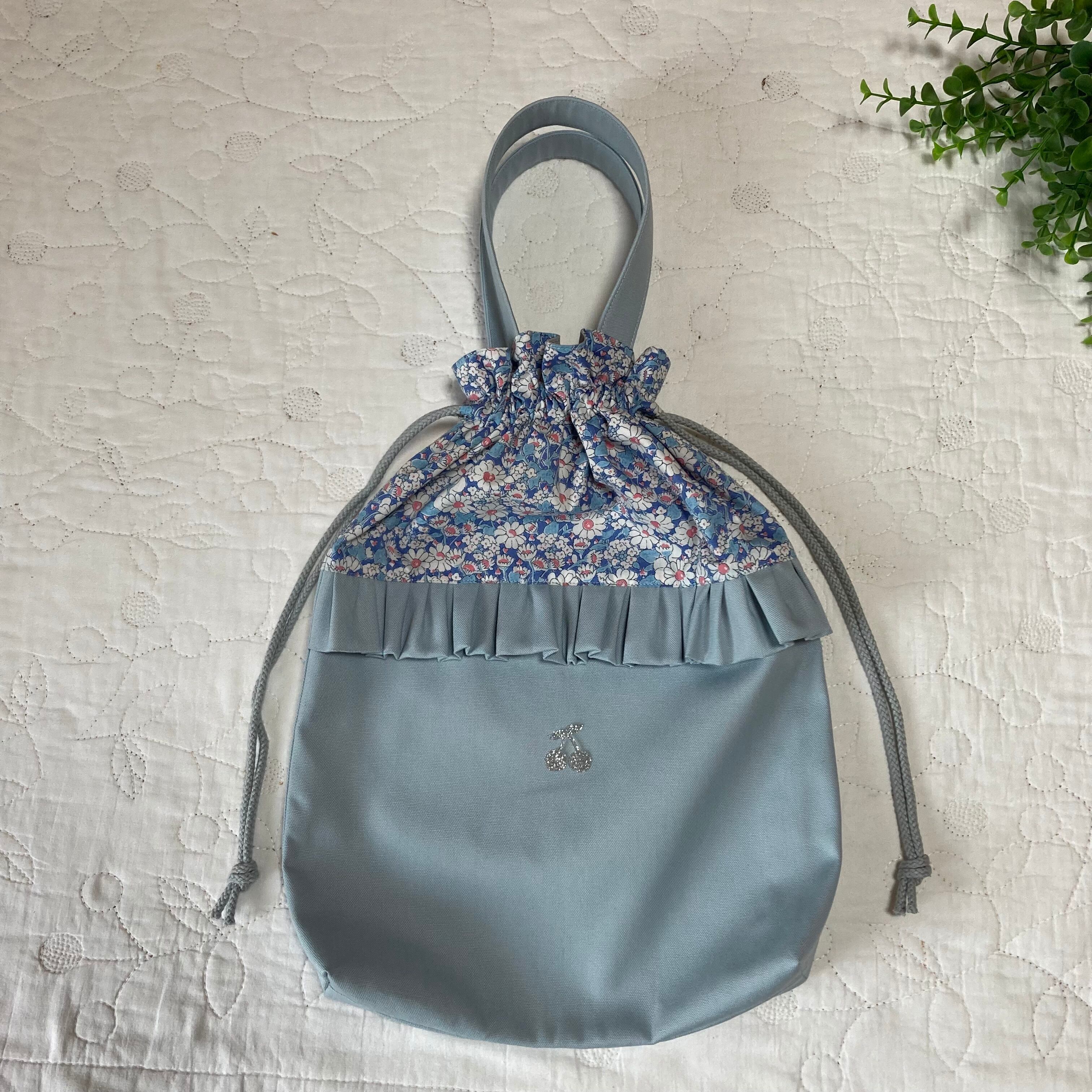 【SALE】お着替え袋 体操着袋 手提げ袋 ハンドメイド リバティ アリスwブルー 入園入学