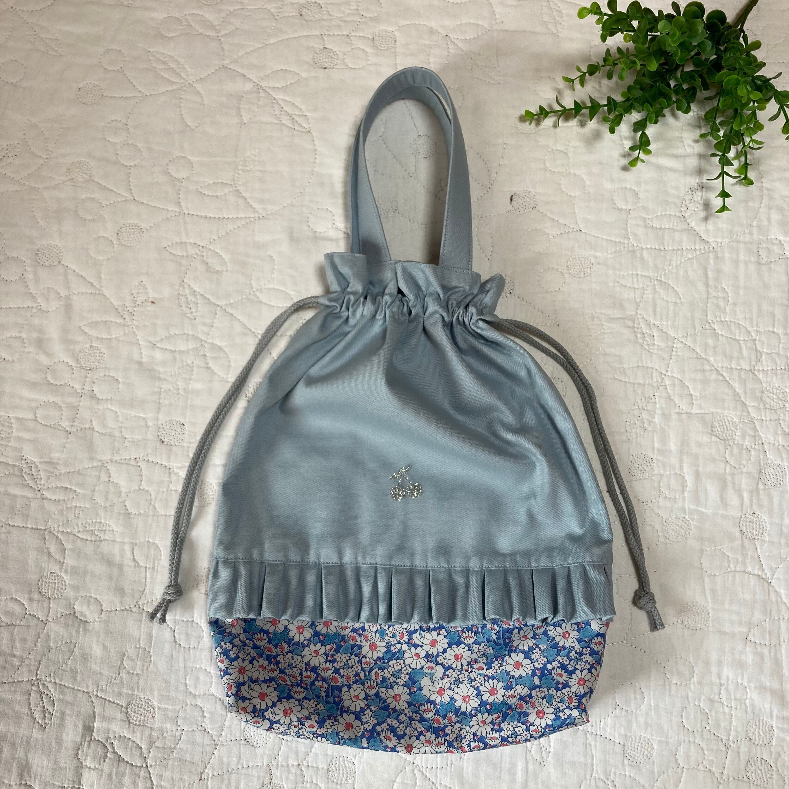 ハンドメイド 着替え袋 体操服入れ 手提げ袋 リバティ アリスwブルー 入園入学