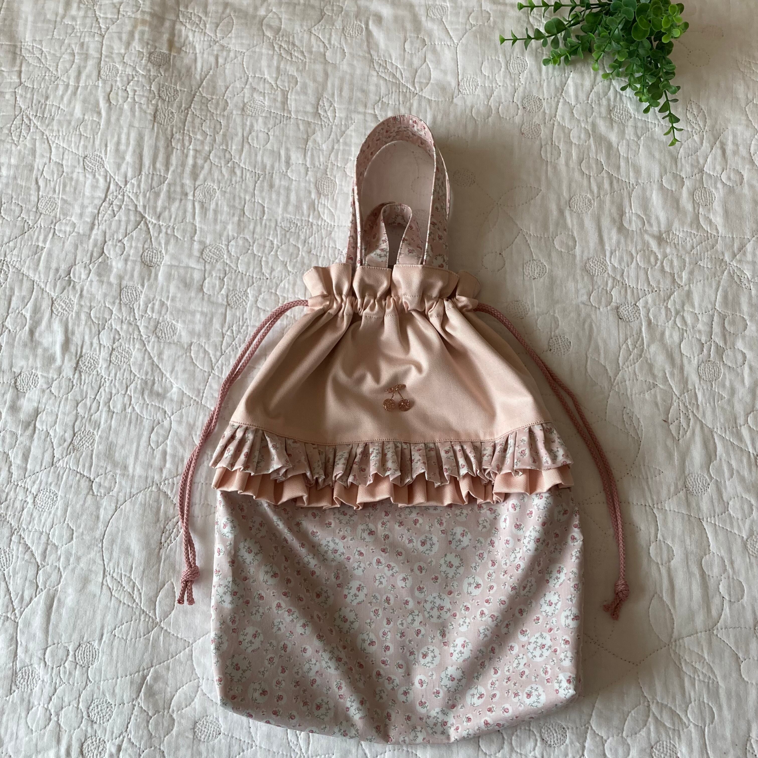 お着替え袋 縦 37cm 片面フリル付き