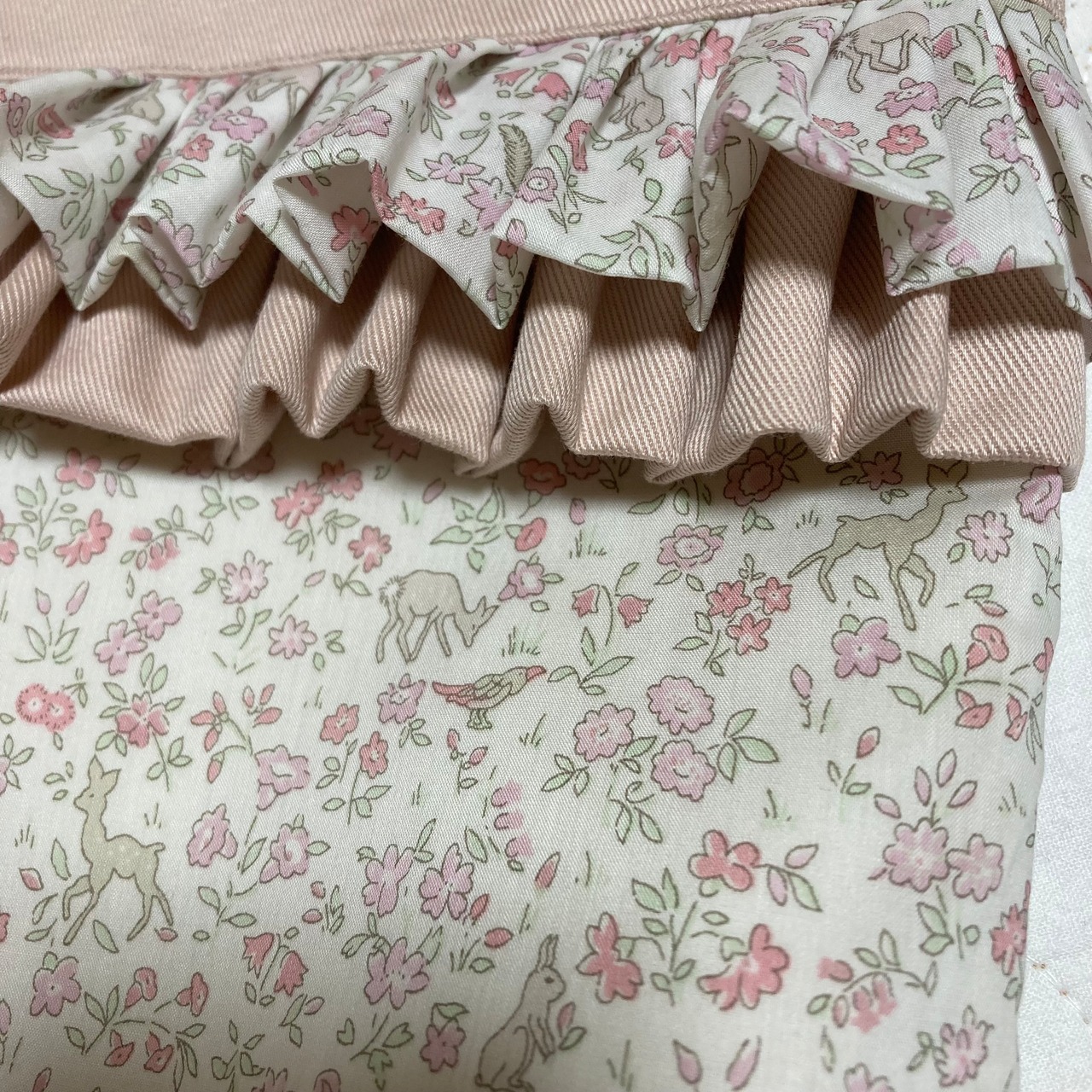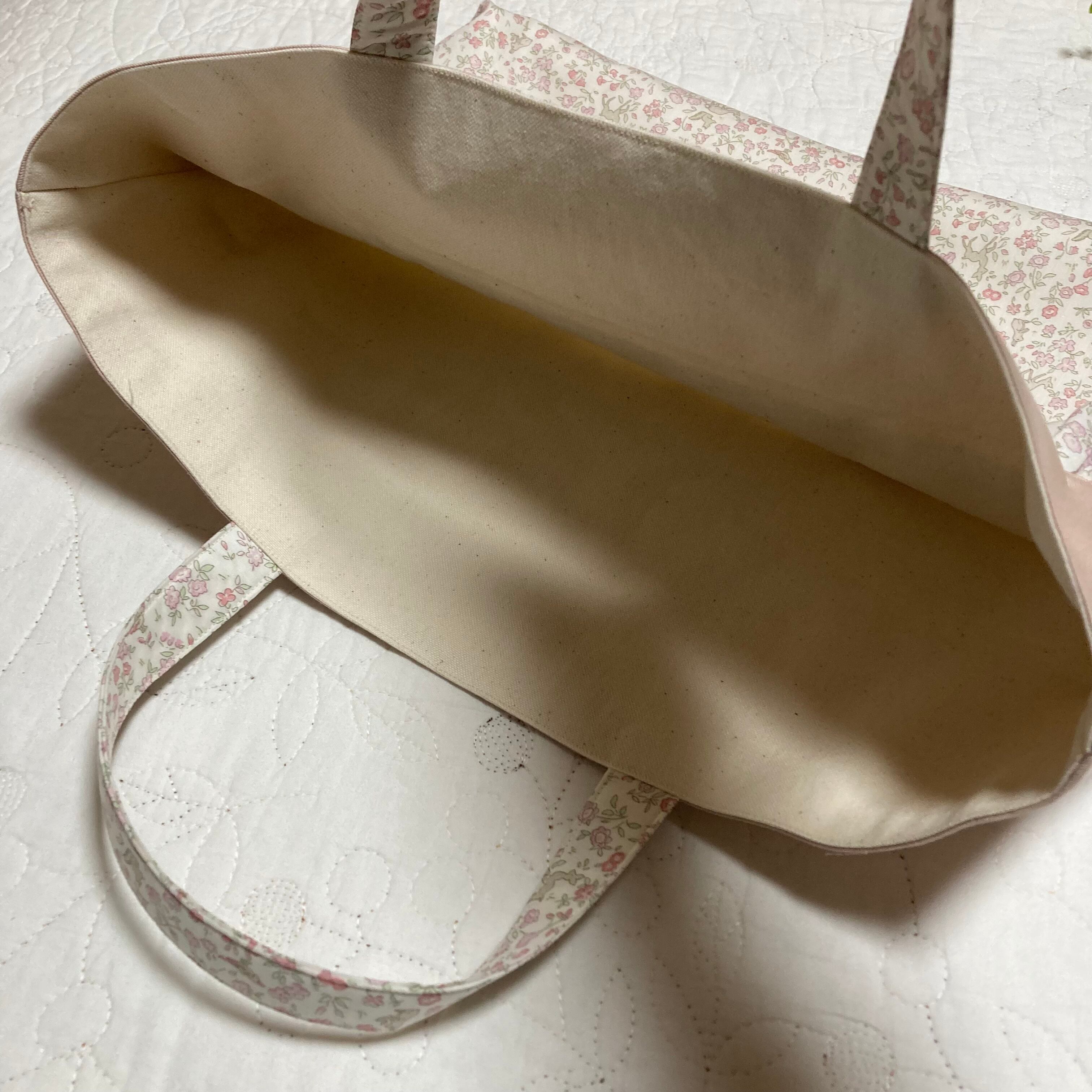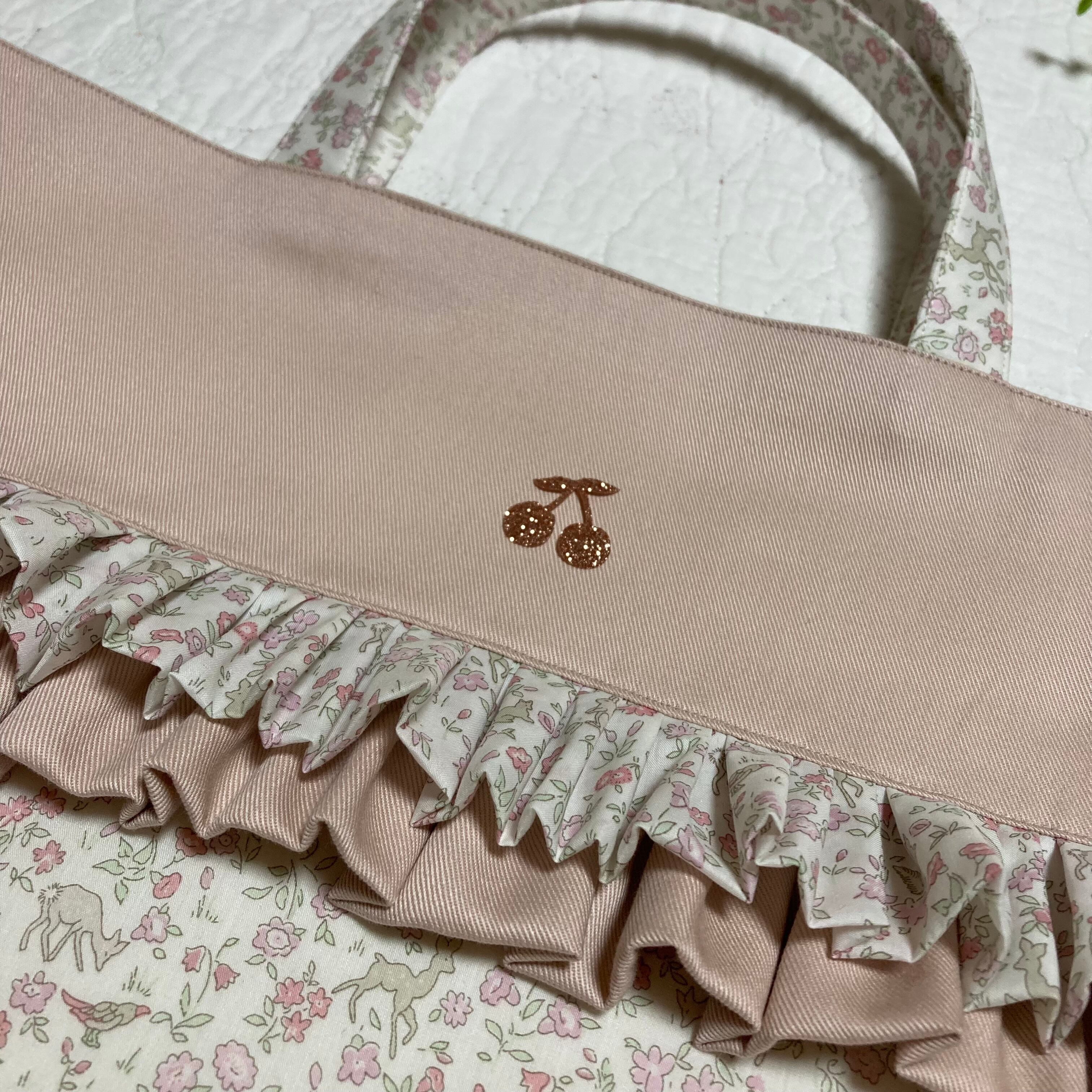レッスンバッグ(絵本袋 通園バッグ 手提げ袋) リバティ メドウテイルズ ピンク ハンドメイド チェックアンドストライプ