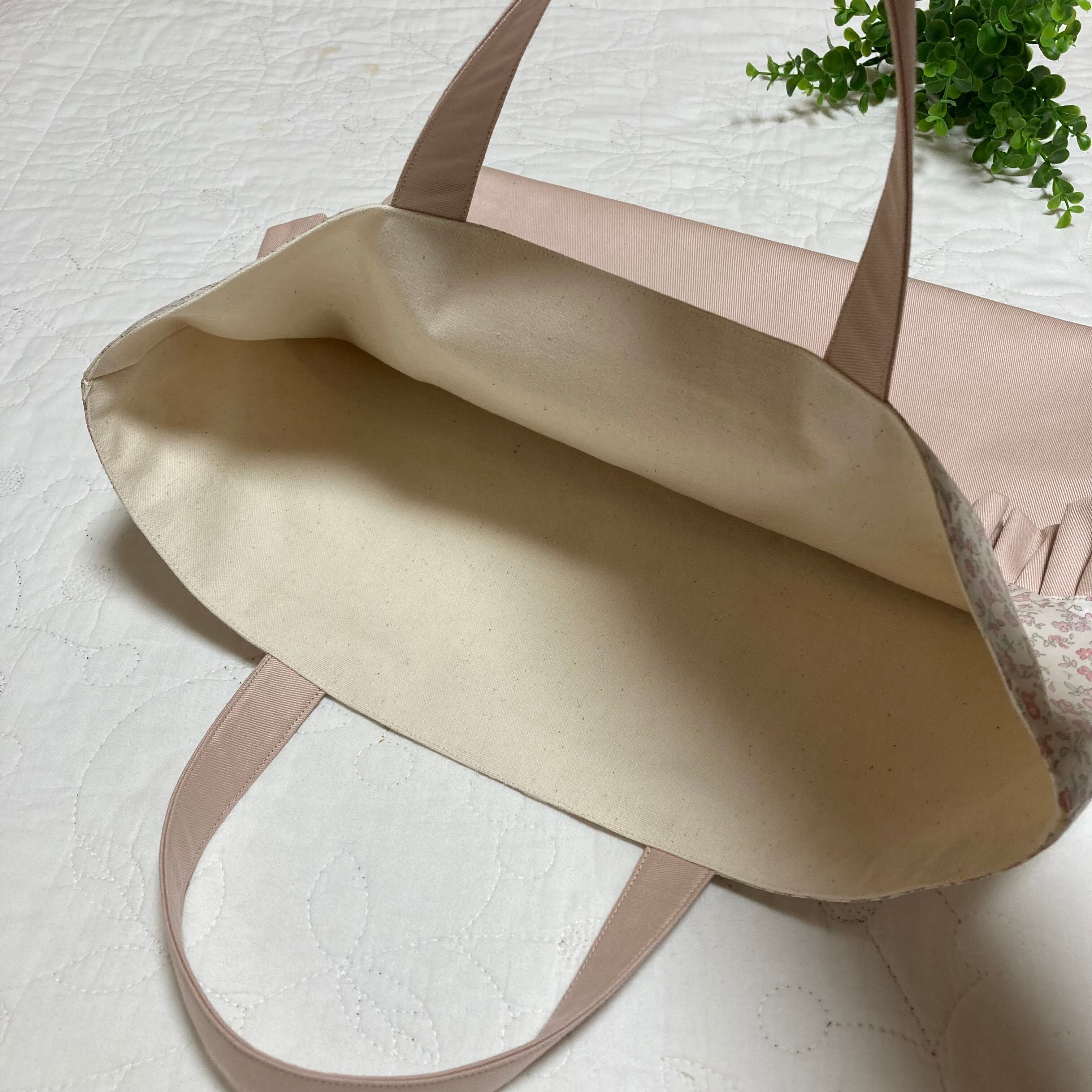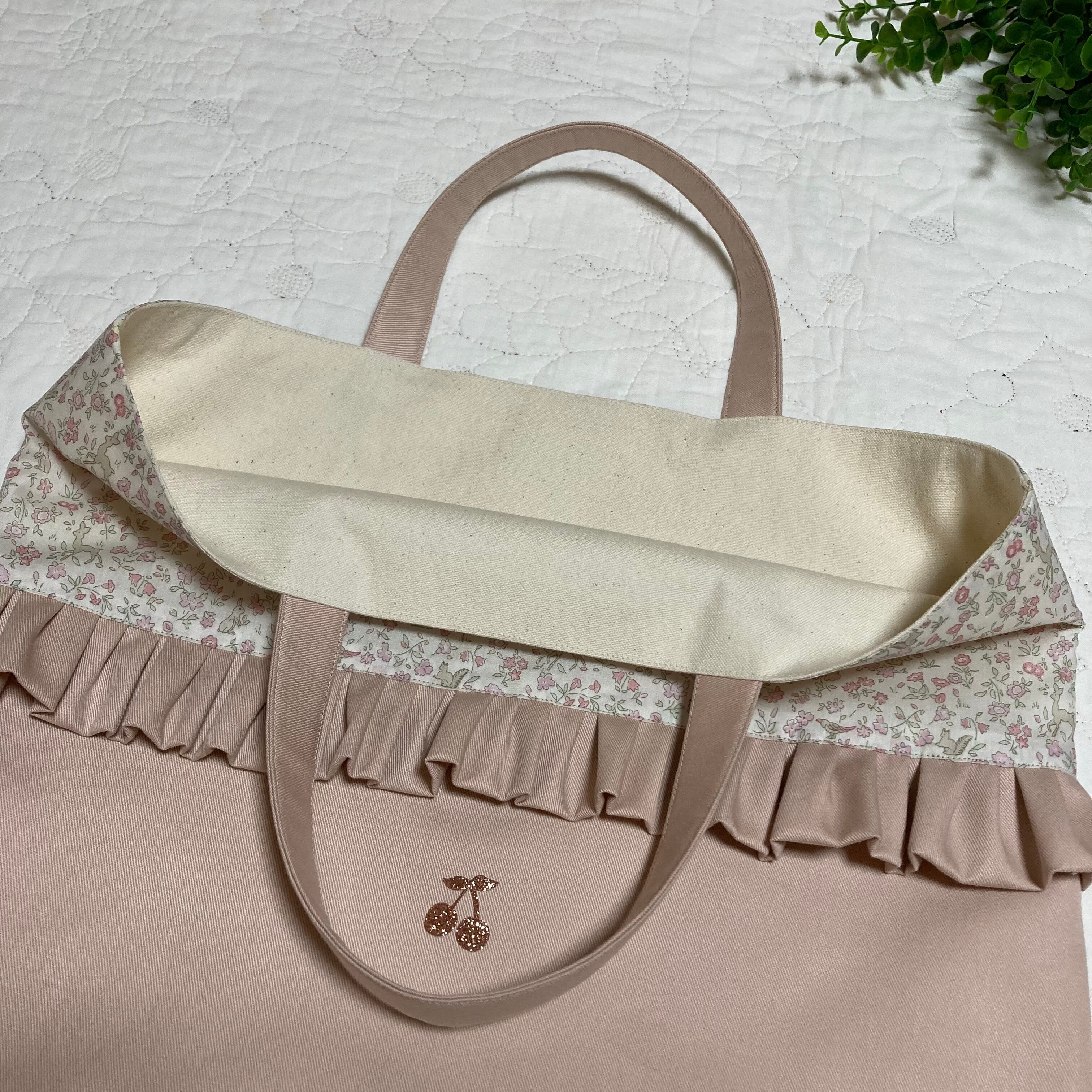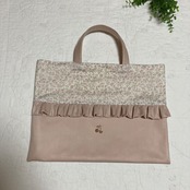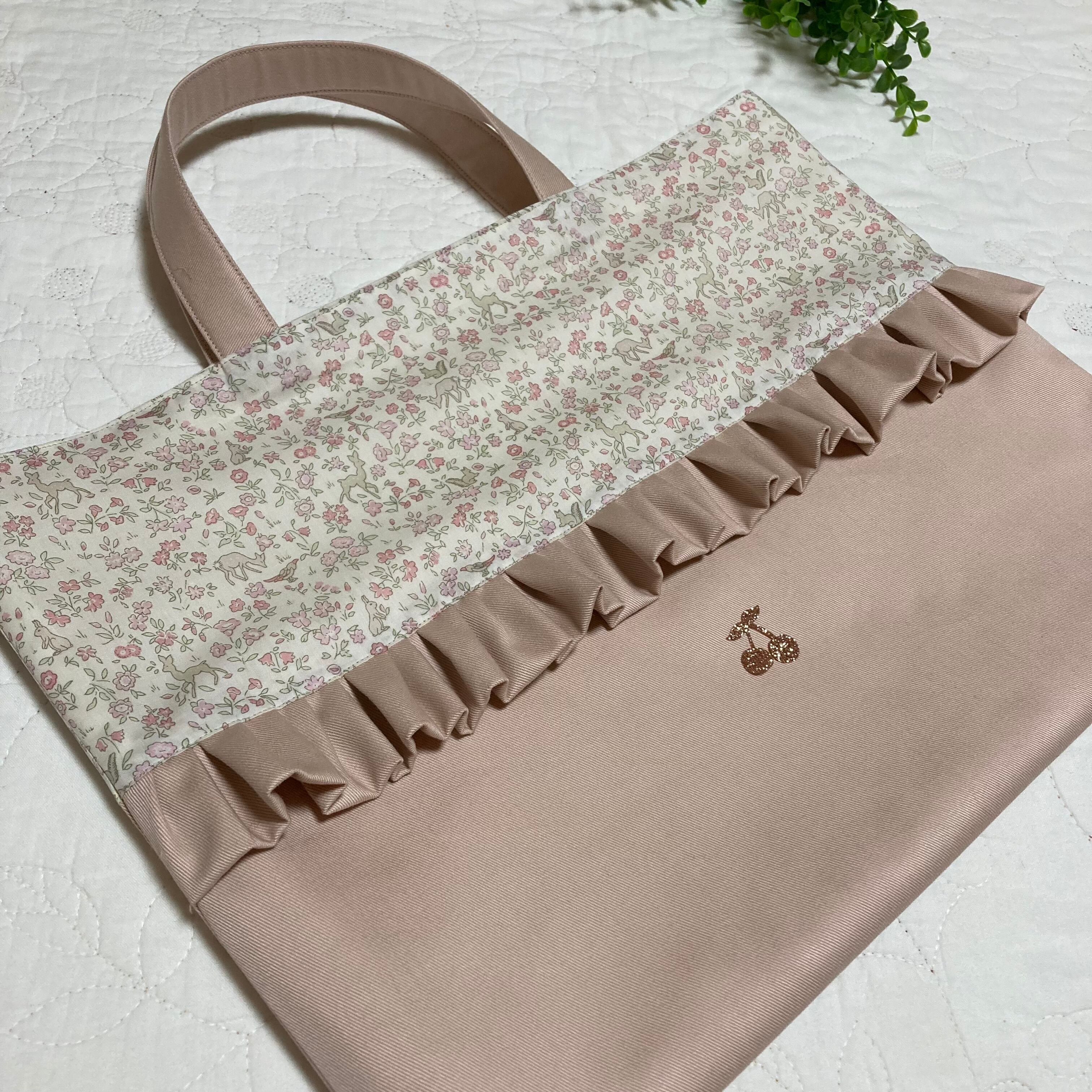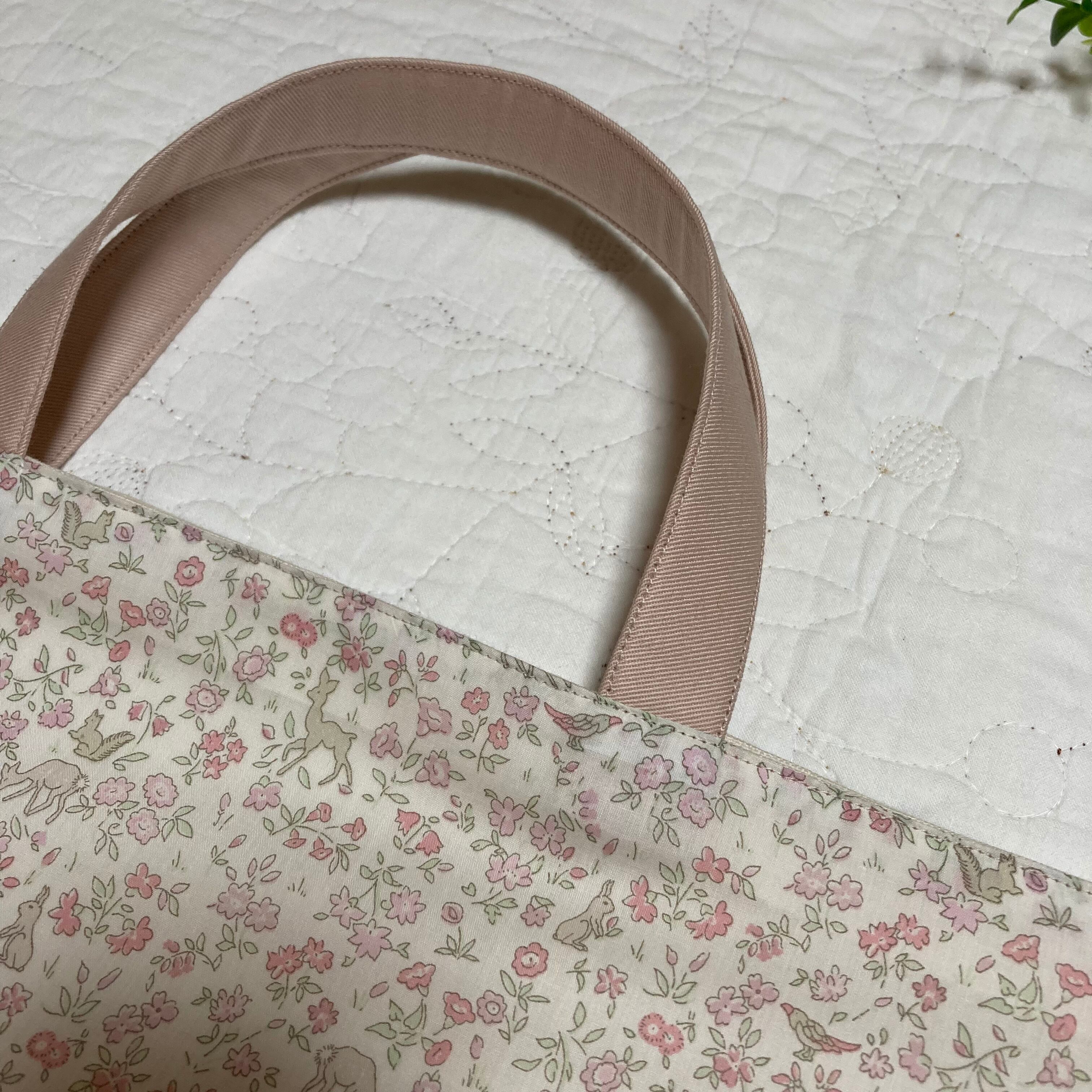 レッスンバッグ 絵本袋 手提げ袋 ハンドメイド リバティ メドウテイルズ ピンク チェックアンドストライプ
