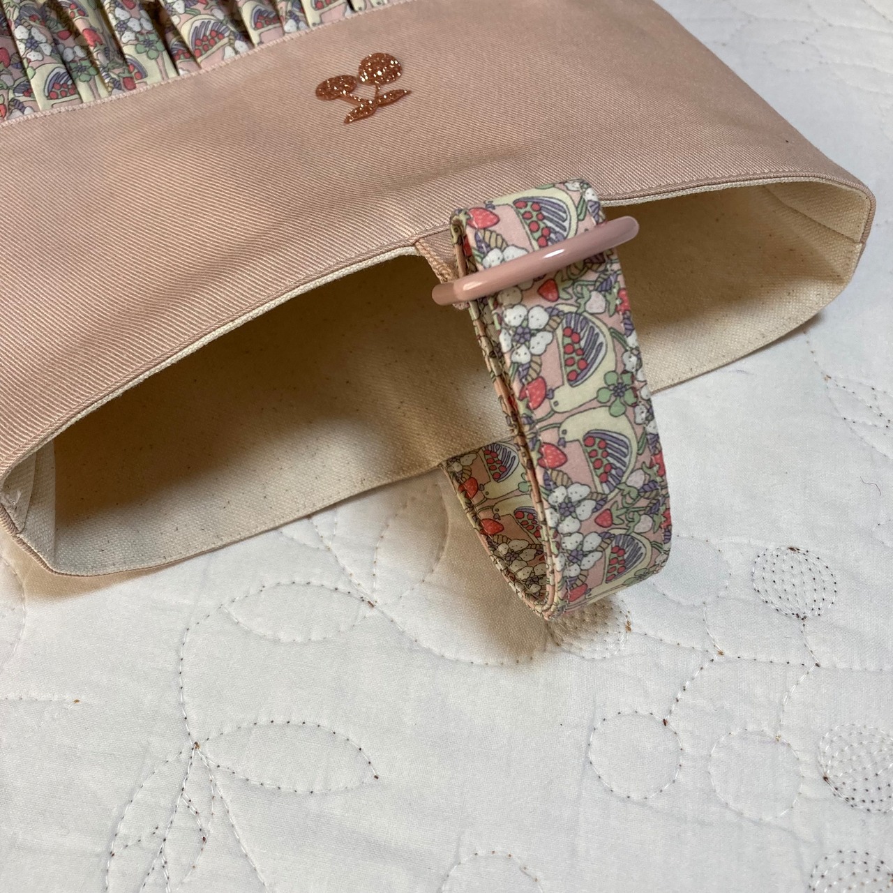 リバティ ストロベリーフィースト ピンクをたっぷり使って作製しました。